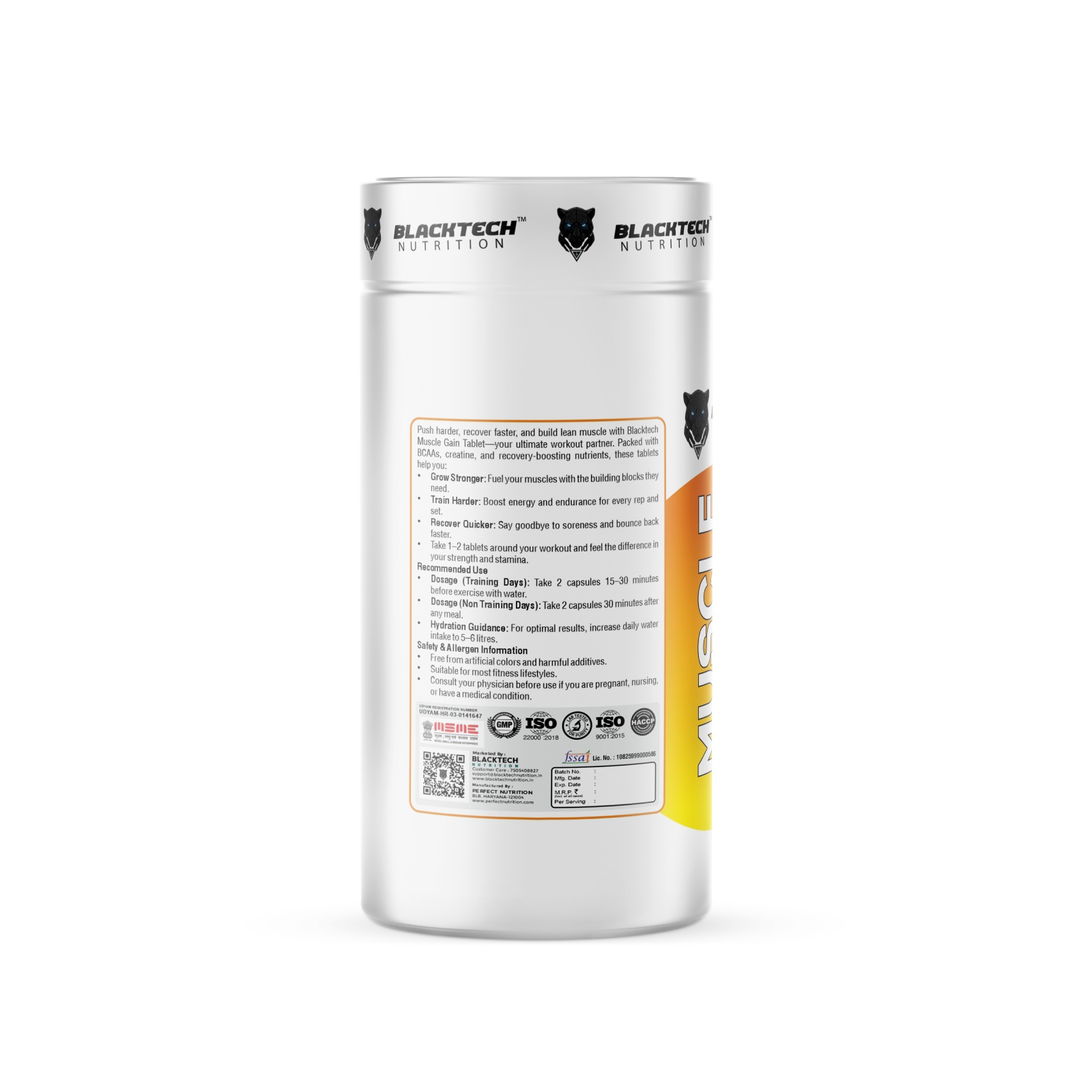 At Blacktech Nutrition, we combine advanced sports science with premium-quality ingredients to deliver supplements that are safe, effective, and trusted by athletes. Muscle Gain 60 Capsules are crafted to help you push harder, recover smarter, and grow stronger.